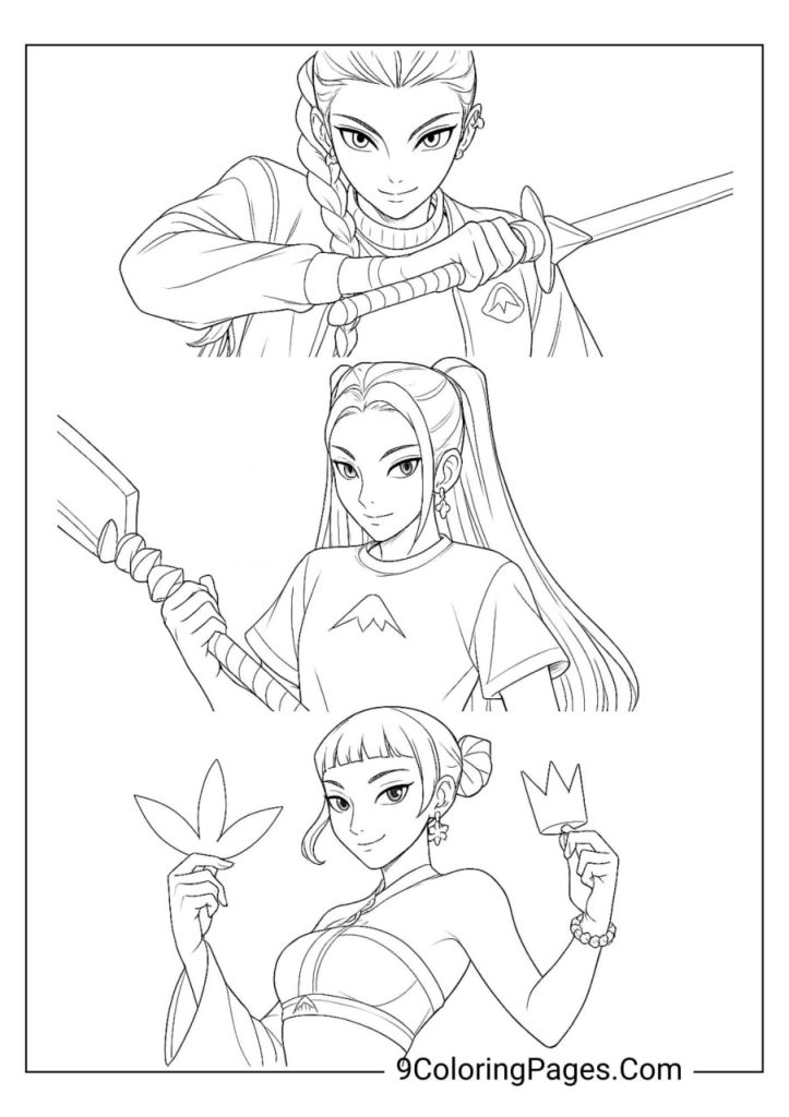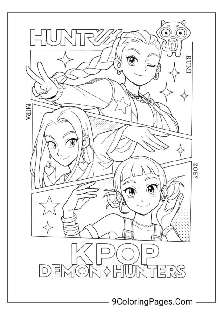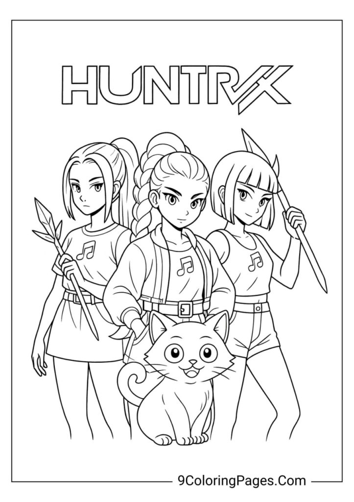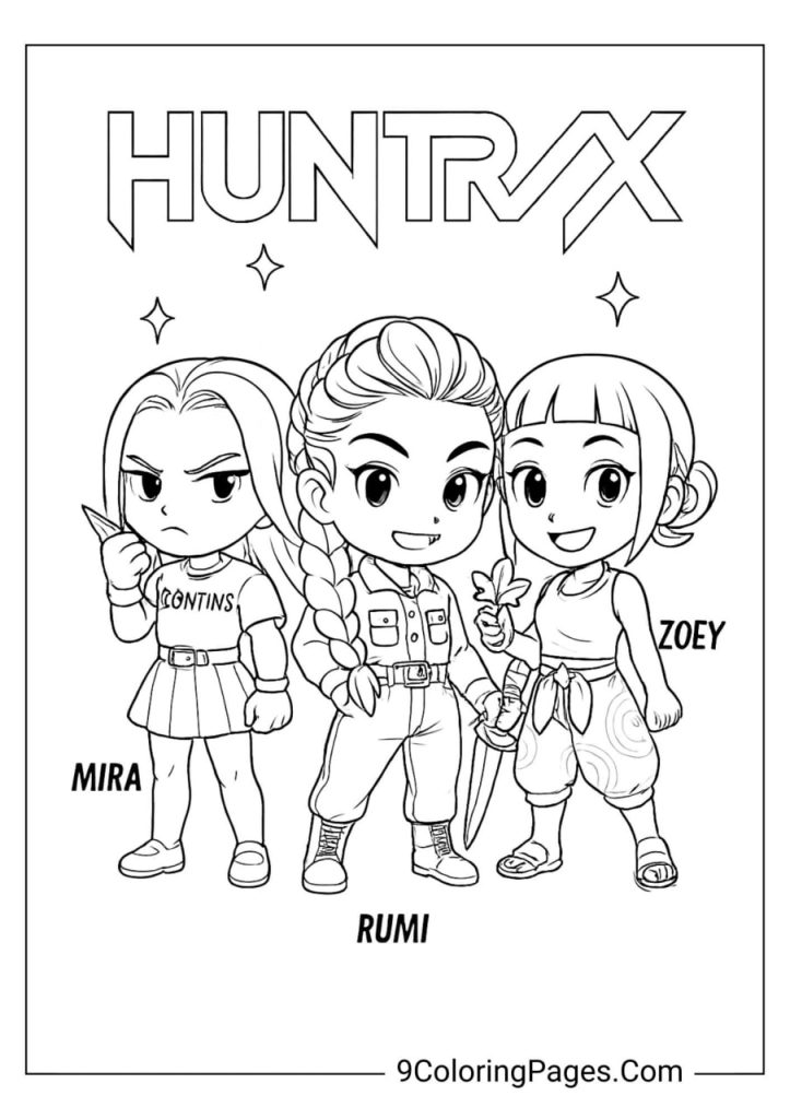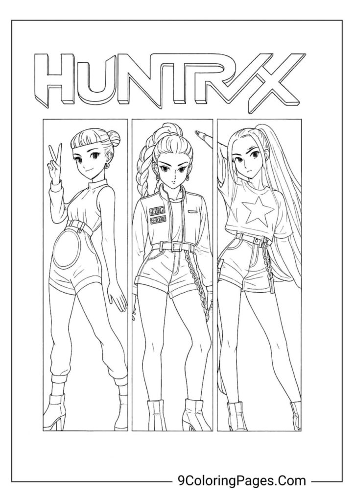 Get ready for hours of fun with these Huntrix coloring pages that are totally free to print! Each page brings your favorite members of Huntrix to life: dancing, battling, or simply showing off their playful side.